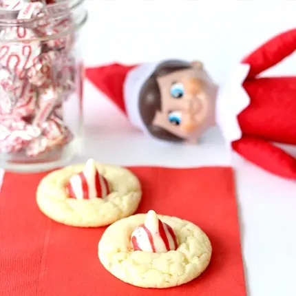 Feed your candy cane addiction with this quick and easy recipe. This Candy Cane Kiss Cookies recipe uses white cake and Hershey's Kisses Candy Cane Mint Candies to help you create the most adorable little cookies. Get the recipe here:Candy Cane Kiss Cookies