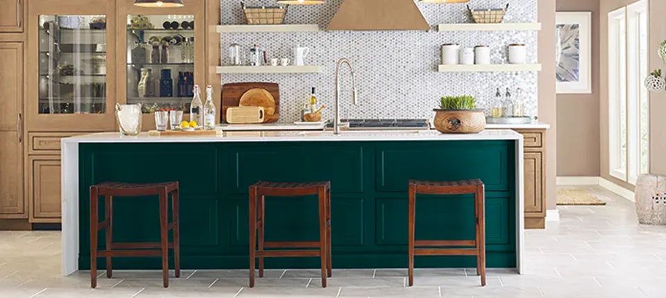 While grey has really taken over the interior paint world, too much grey can become boring and cold. Mix it up with a warm, grey stain over your kitchen cabinets that still reveals the wood’s natural graining. This hue pairs nicely with modern stainless steel accents and appliances and works in a variety of kitchen style. Enjoy the versatility of grey without sacrificing warmth and detail.